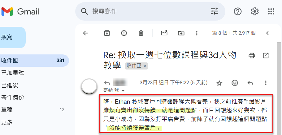 你可能已經理解我的意思,那麼你就會知道,課程教的方法一定都是有效,但是每個人的理解與執行程度、正確操作的程度會導致結果的不同。我自己推出這個課程的時候,你知道嗎? 第一批買的人就是我的老學員,這正是[私域客戶回購]的概念有效的最佳證明,如果沒效,不代表失敗,因為你可以問我問題、並且持續修正,就像學生時代我們考試,這次沒考好,加強自己沒做好的部分,還是可以有下一次考好的機會。